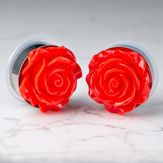 Red Acrylic Rose Stainless Steel Single Flare Plugs *Discontinued*