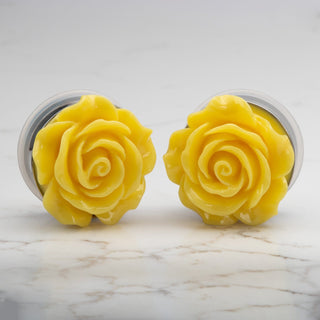 Yellow Acrylic Rose Stainless Steel Single Flare Plugs *Discontinued*