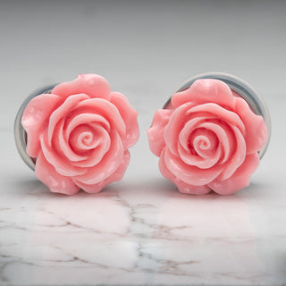 Pink Acrylic Rose Stainless Steel Single Flare Plugs *Discontinued*