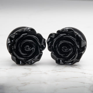 Black Acrylic Rose Stainless Steel Single Flare Plugs
