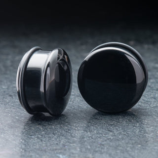 Black Obsidian (Volcanic Glass) Concave Plugs *Discontinued*